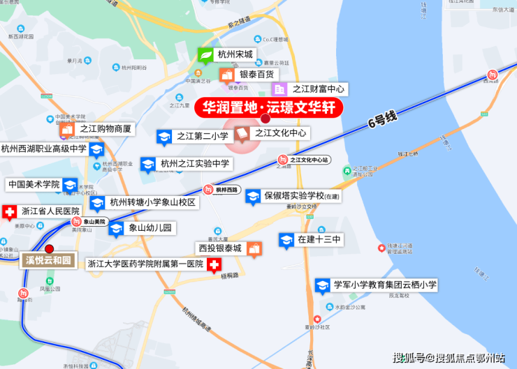 其他:之江文化中心一路之隔、浙江省非物质文化遗产直线约150米、省博物馆直线约260米等。