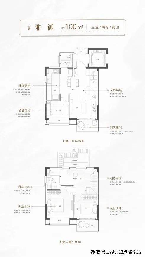 建面约100㎡玲珑叠墅,三房两厅两卫,卧室均朝南设计,精致花园,上下层动静分区,两层南向采光,打造通透的生活格局。