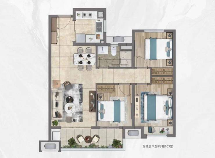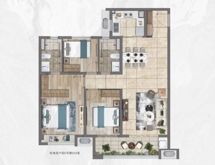 其在售毛坯高层建面约96-118㎡,在售小高层建面约135㎡,于改善基础上顾及不同家庭的细分需求。