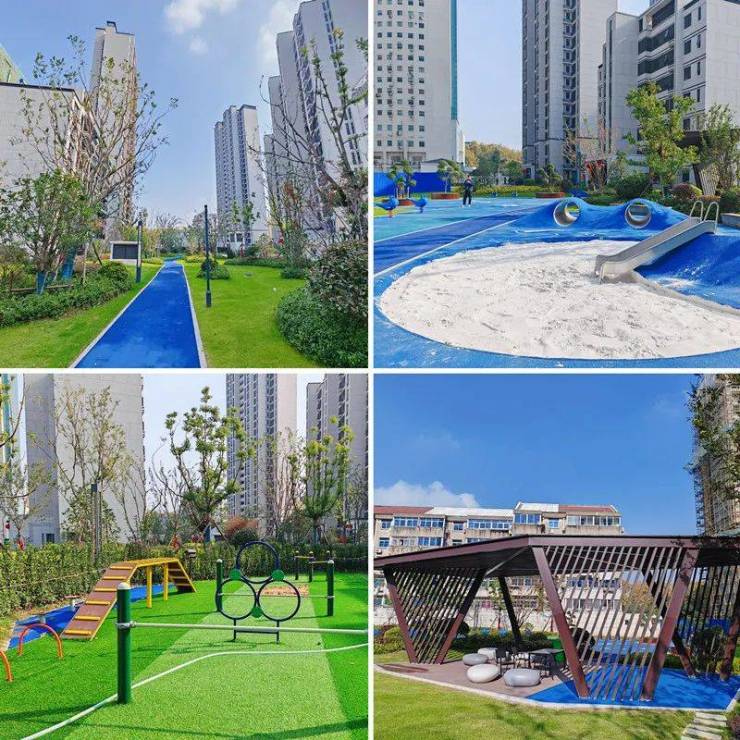 其中,室外空间涵盖儿童乐园、长者乐园、宠物乐园、休闲会客厅、草坪剧场、健康跑道等主题。