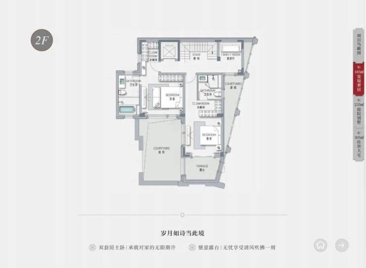 其次,相比城心大平层“一层不变”的生活,桐安里的联排别墅生活情境 更立体,更个性化,更私密,更适配大家族多代人居住。同时别墅户型的面宽、采光、收纳、通透、得房率等都做到尽善尽美,让家里的每一位成员都有更舒适的起居环境。