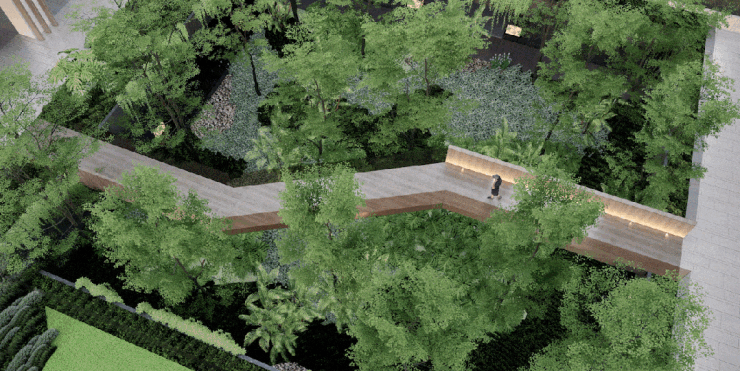 观岚·森屿以“一链九岛”的格局重塑社区秩序,将繁华CBD中难得的静谧,化作九大主题岛屿。