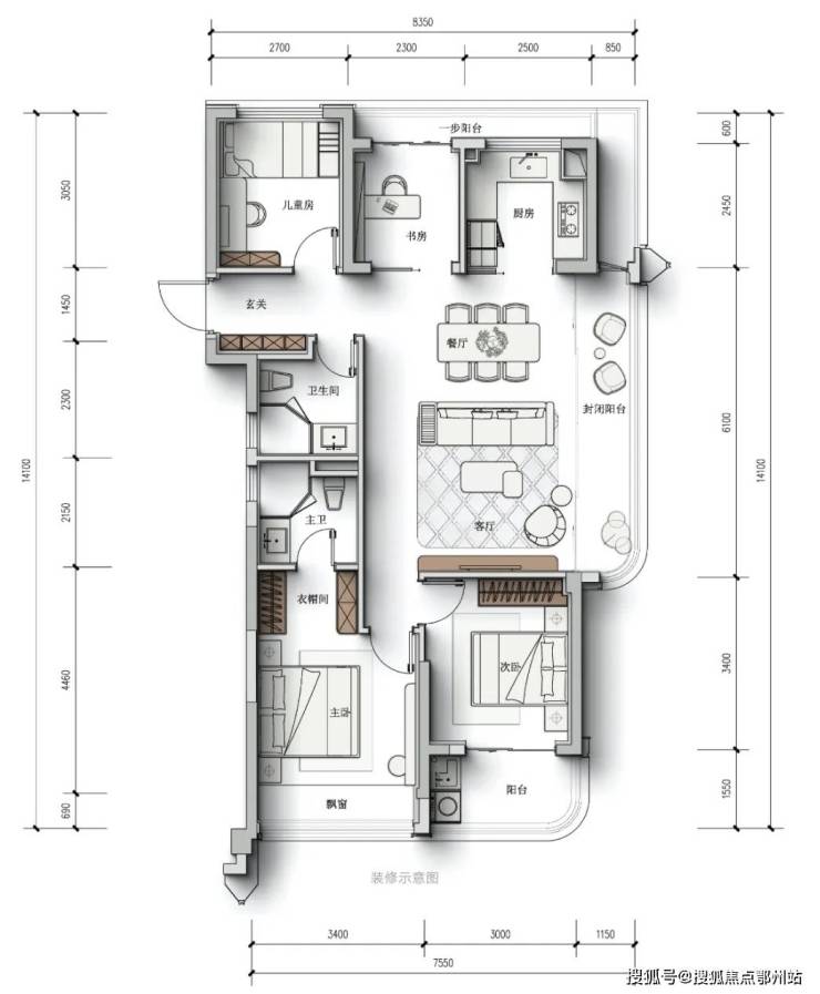 建面约112㎡四房,罕见三阳台设计,LDKB一体化 + 270°环幕视野,直接对标市面125㎡ + 户型。