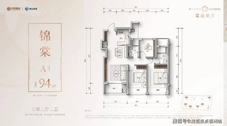 建面约94㎡三房,三开间朝南 + 1.5米进深阳台,玄关“深U空间”可嵌入双开门冰箱,小户型也能实现极致收纳;