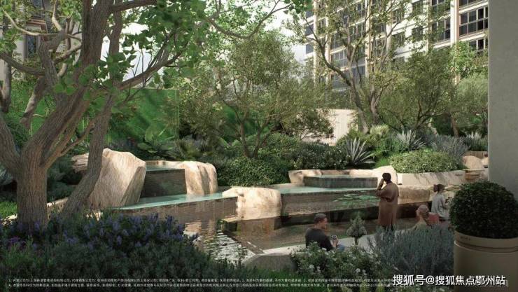 "一心两轴三花园" 的景观布局,绿植错落、水景灵动,步道蜿蜒其间,仿佛置身半岛艺奢藏馆。