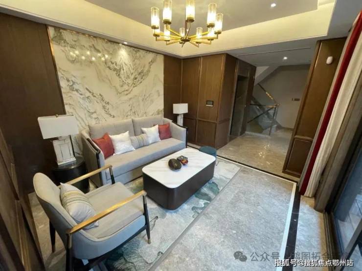 建筑外观上是新中式格调,以黑色面瓦为黛顶,整体线条简洁明快。0.86容积率,带来更低的人居密度、更好的采光,还意味着将更多留白空间给了景观。比如打造一系列公共设施,石凳、石桌、洗手钵、锻炼器械等,满足业主的休闲娱乐需求。