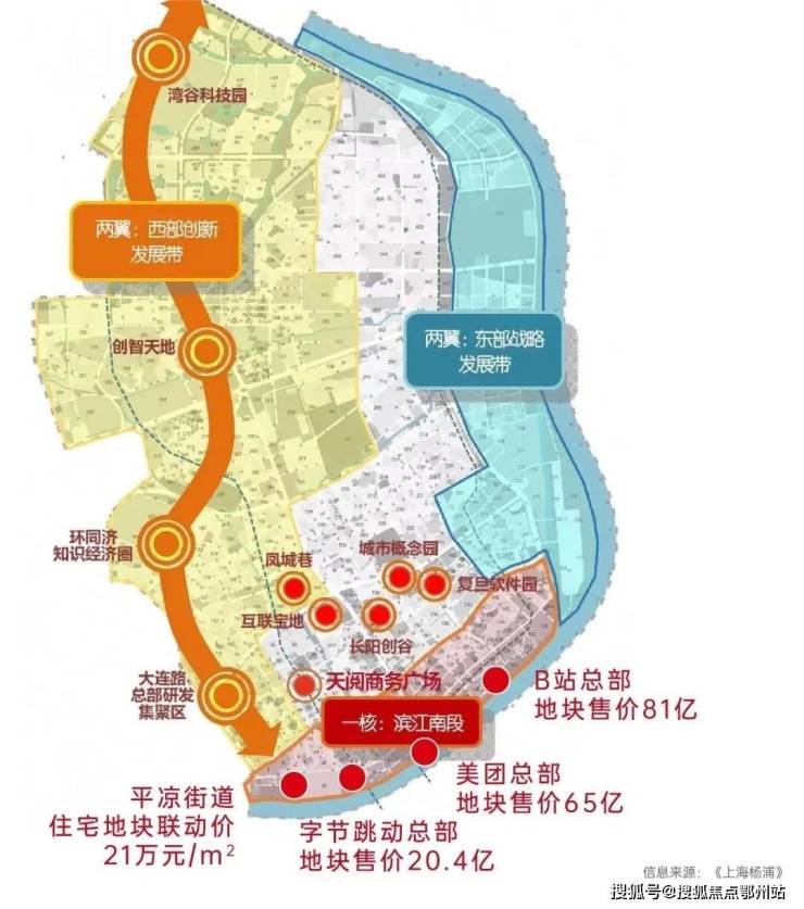 位于首创滨江壹号一路之隔的杨浦区平凉路03B3-01地块于去年10月政府官网公告房地联动价为21万/平米,未来由瑞安集团进行开发打造历史风貌保护区。不仅刷新了杨浦区的最高记录,还创造了2022年上海联动价之最!体现了区域的未来能级。