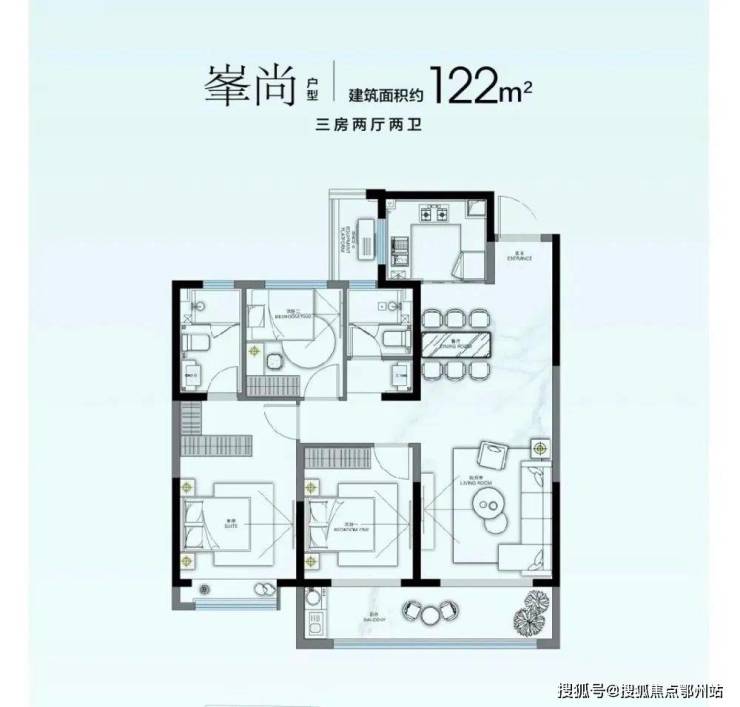 建面约122㎡和133㎡的两款户型都是 三房两厅两卫的设计 , 不同的是133㎡用餐客一体的设计自然的分割了主卧和次卧 ,让每一位家庭成员都有自己的空间,不仅提升了生活的舒适性还节约了户内面积。