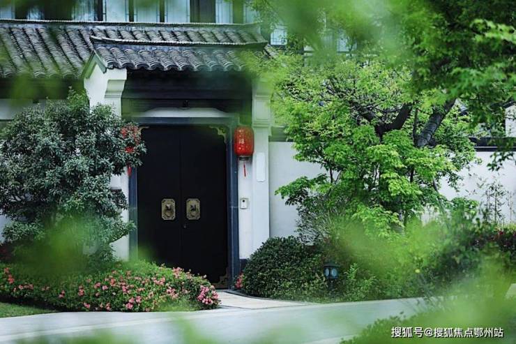 合院组团的入口, 以一座“ 落客亭” 迎宾,充满仪式感的设计,以往都出现在绿城苏州桃花源、绿城云溪玫瑰园这样的顶级大豪宅住区。
