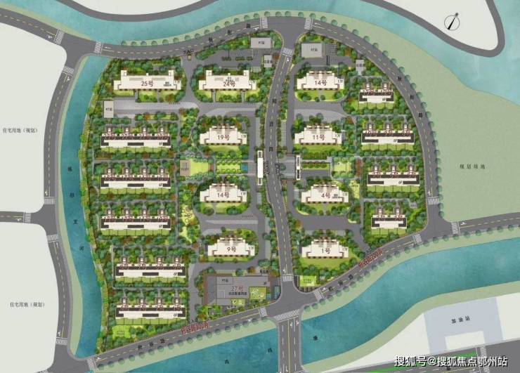 项目 容积率仅1.8,由9幢6F叠加别墅+9幢17F墅境高层组成 ,叠墅东西两侧临河分布,整体高低错落布局,采光佳,视野好。