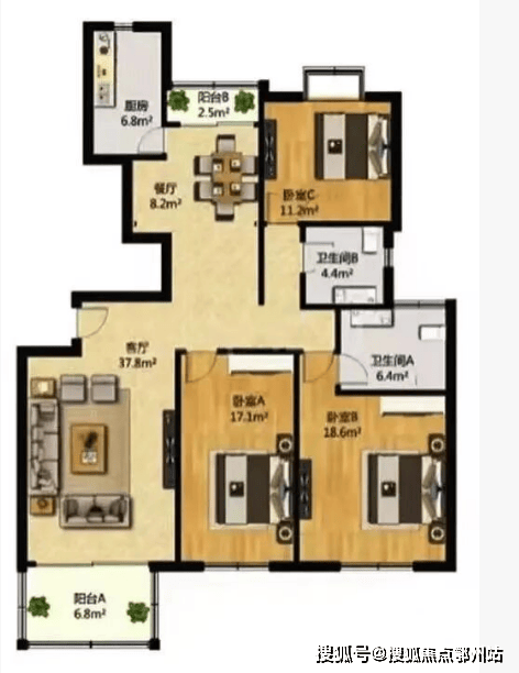 建面:149.11㎡:三房两厅二卫