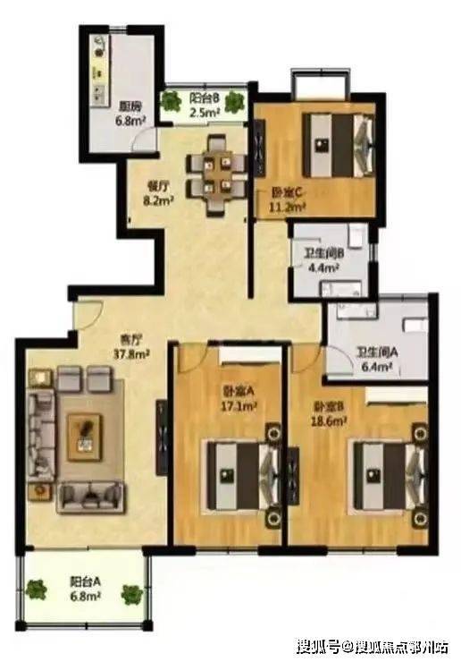 建面:149.11㎡:三房两厅二卫
