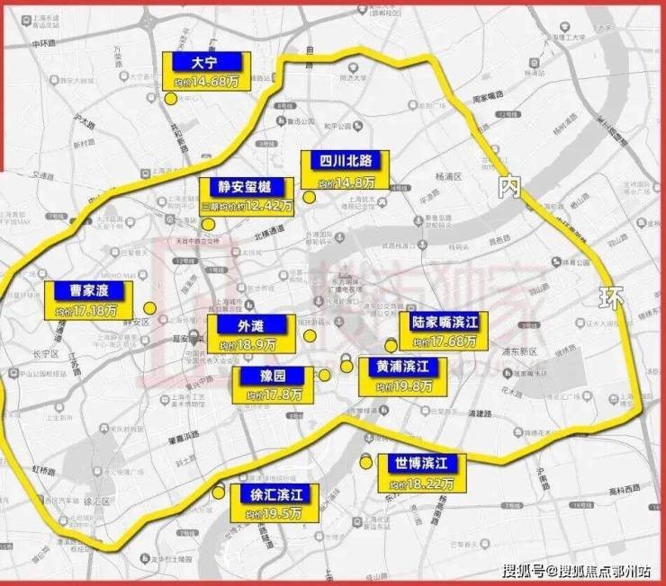 可以看到,最直观的对比就是四川北路与大宁,两大板块与静安玺樾的直线距离都在3km以内,其中大宁地处内中环,新盘均价也已俨然来到了14.68万!