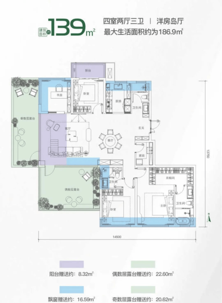 项目整体打造为新四代产品,高赠送,户户私享空中庭院。项目北侧为70亩教育规划用地,享受目送式教育配套,小区配建约4080㎡幼儿园,教育资源优渥。