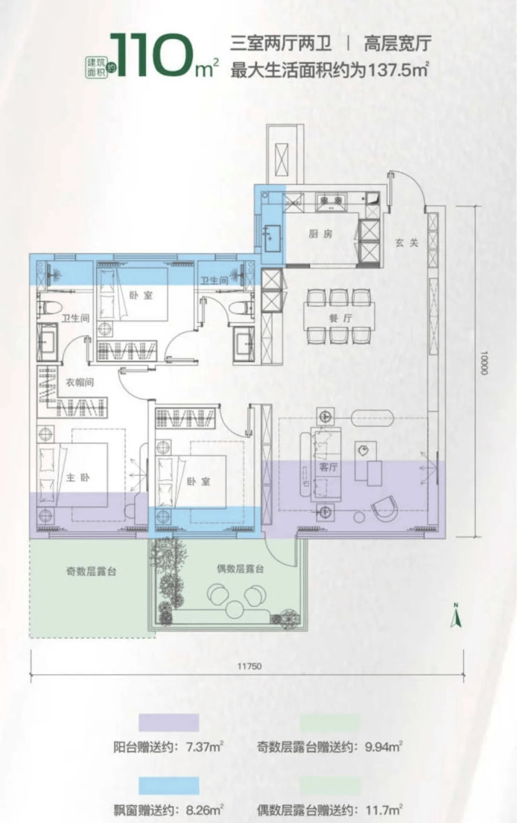 位于经开区北三环以北,元鼎路以南,属于主城核心板块。项目总占地面积约78亩,容积率2.8,总计1103户,产品规划有110-140㎡高层/小高层/洋房。