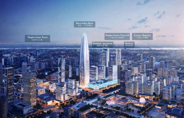 从项目自身来看,项目为近百万方TOD综合体,包含宁波中心大厦、阪急百货内地首店、浙江首家丽思卡尔顿酒店、精品公寓蘭轩、天幕大宅蘭园等五大超级业态,其中409米宁波中心大厦,不仅是在建浙江第一高楼,也将是未来10年内宁波第一高楼。