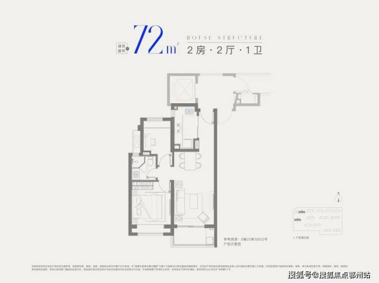 建面约72㎡2房1卫,做到双开间朝南+全卧室带飘窗总价低至2字头 ,是刚需上车2房的优质之选。