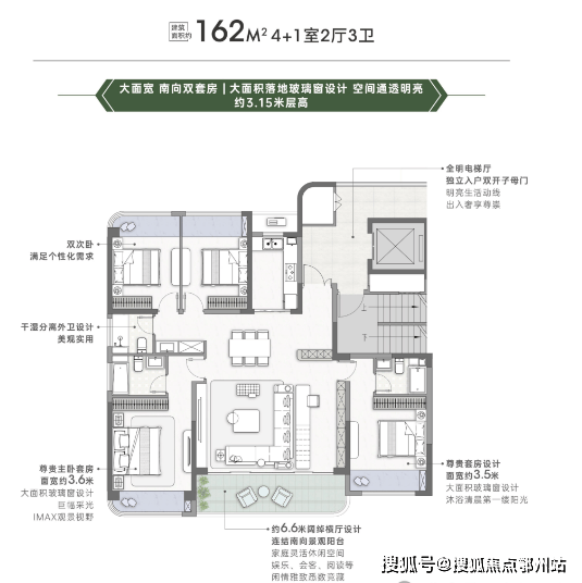 室内层高:大平层 3.15 米-3.25 米