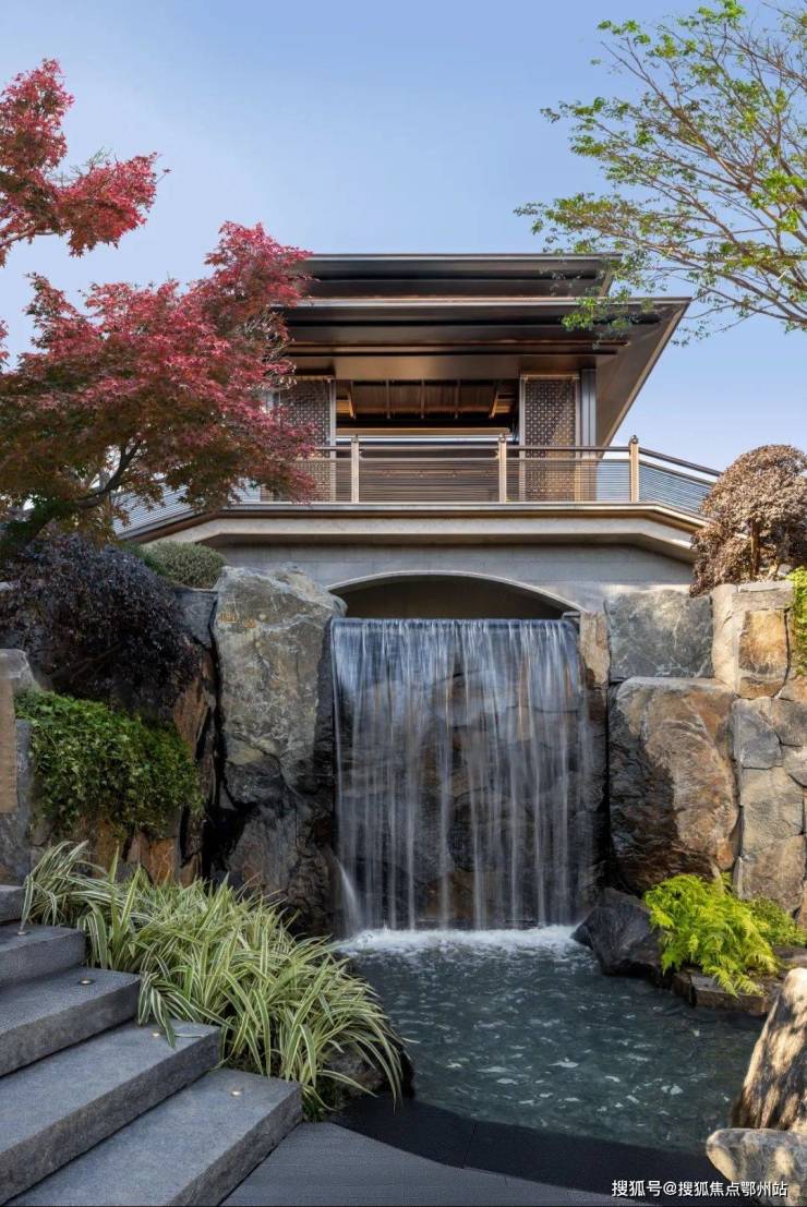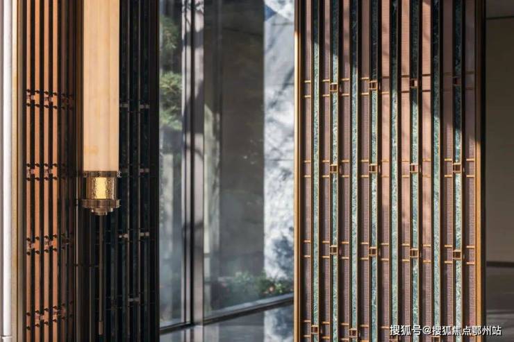 抬眼可见「江南坡屋顶造型」,prada绿奢石做的屏风、“墨染”流云大理石、门楼挂画、叠水倒影吊顶、屏风宫灯……尽显中式风韵。