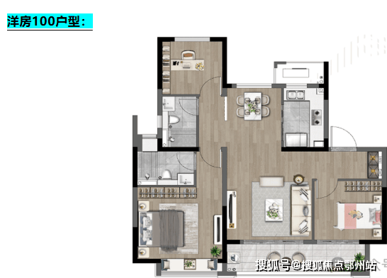 100㎡三居:单价2.15-2.3万/㎡,总价205-230万(得房率81%)