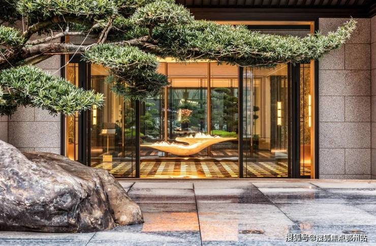 1️⃣礼序中庭 山水观心府门承袭中式府邸的传统对称性布局,再现温润如玉的礼序空间