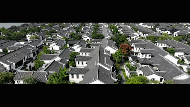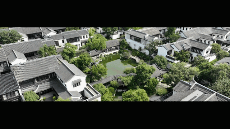 飞檐戗角、雕花漏窗、廊下垂花……一个个简洁精致的中式构件,勾勒出中式建筑的轮廓;坊巷街弄的规划,重构着中式居住情怀,在山水林间,还原江南的风雅。漫步在园区内,仿佛穿越时空,回到了那个文人墨客挥毫泼墨、吟诗作对的时代。