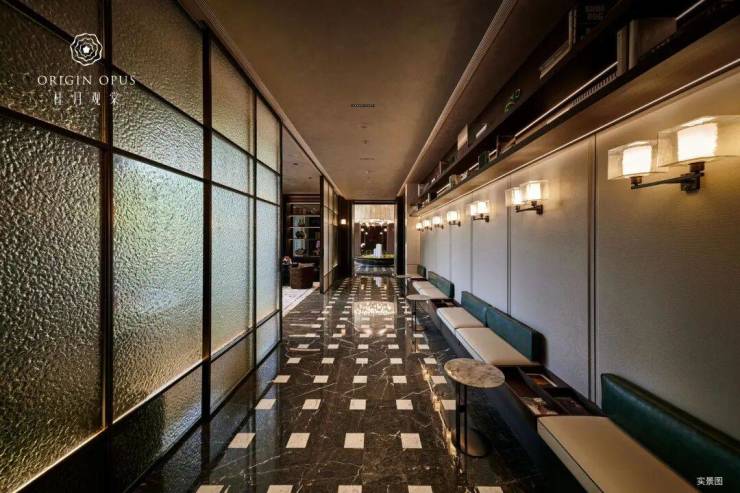 多元泛会所 多重奢享:打造行政酒廊、礼仪前厅、悦享书吧、会议沙龙、瑜伽室等多元泛会所空间,使室内空间、园林中庭景观、泛会所空间相互融合,营造全龄奢享的精神场域。行政酒廊 雅聚领地:专属行政酒廊,商务会谈与知己聚会的精神领地。觥筹交错,灯光辉映之下,尽显典雅奢华。