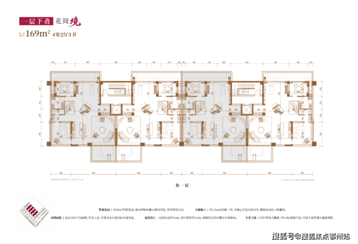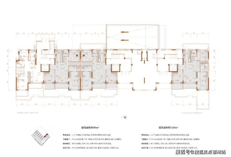 项目主打3层的超低密洋房产品,另有3套联排产品,户型类型丰富;洋房为创新的多层退台式洋房,层高高于传统常规洋房产品,3.3-3.6m层高对标别墅产品层高。