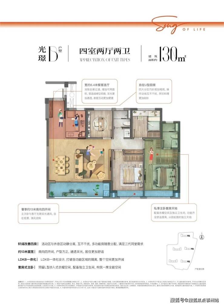 约106㎡户型点评:双联阳台约6.7米面宽,加设L型俯景面,满足晾晒、赏景、采光三重需求,LDKB一体化设计,打破各功能区域的隔离,整个空间更加开阔,开放式厨房 U型厨房,封闭敞开随心切换,高效台面设计,操作动线更加合理