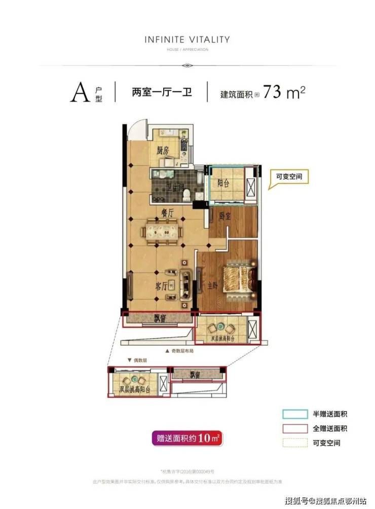 【73方】对于小户型来说,73㎡的户型,也做到了两室两厅一厨一卫,其中它的阳台是云锦城特有的“双层挑高”。相比于“一步到位”的购房者,这类户型更适合刚需家庭。