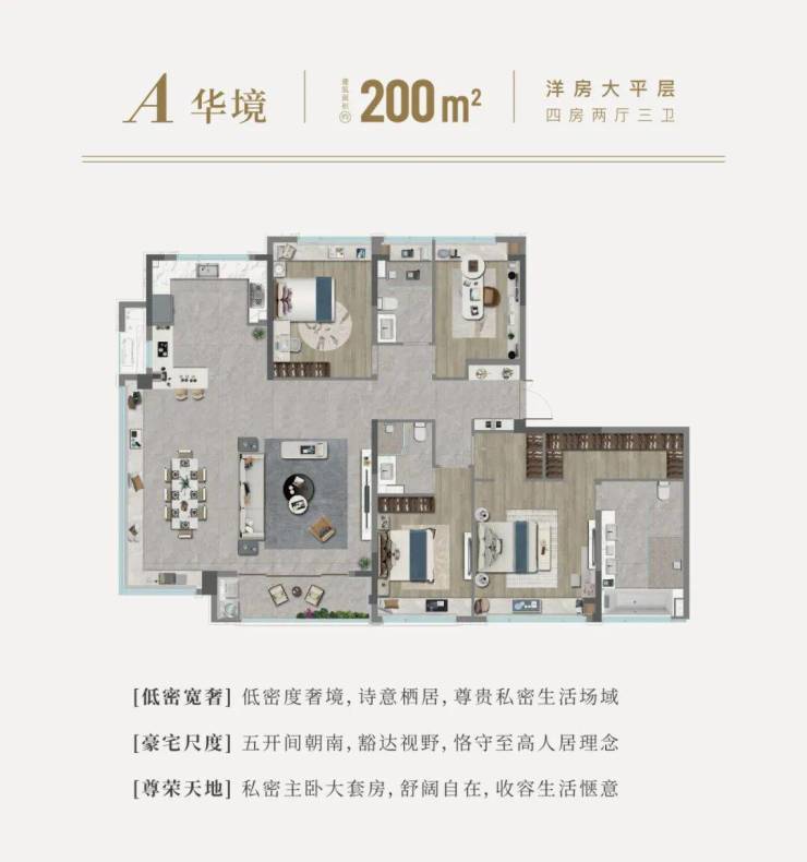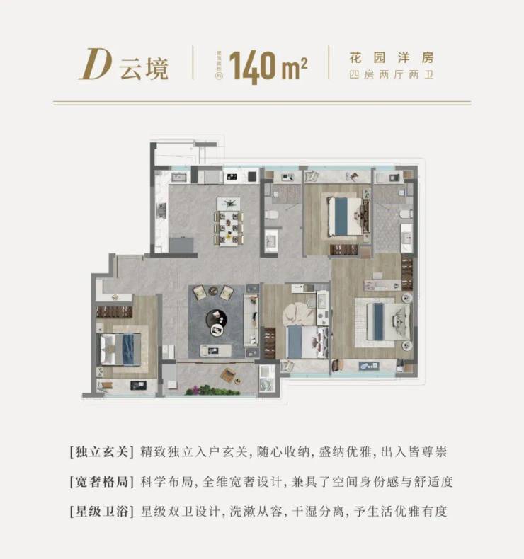 滨水叠墅: 低密墅境,生活傍水而居,尊贵私密场域,承东方礼序规制,细嗅当代风华,演绎高级居住艺术。