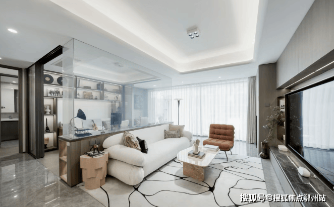 极致的动静分区设计, 客厅、餐厅、厨房组成的活动区与卧室所在的休息区清晰分离,周末孩子在客厅搭积木、老人在阳台浇花,动静互不干扰;即便深夜家人回家,也无需担心打扰熟睡的孩子。