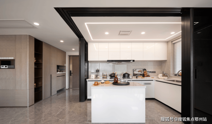 中西双厨设计则满足品质生活爱好者的需求:西式岛台可用来制作沙拉、烘焙甜点,朋友聚会时,主人在岛台备餐,客人在客厅聊天,互动感拉满;中式厨房则专注烹制拿手硬菜,油烟与活动区完全隔离,兼顾美味与整洁。