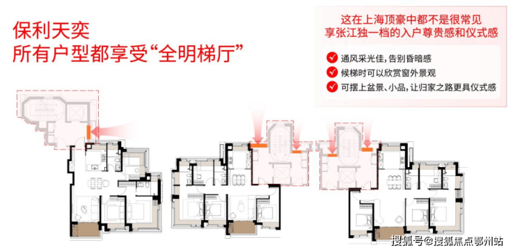 据统计上海700-1000万级新房项目, 全明梯厅大部分都是大户型豪宅专属,即便是均价20万的顶豪,也很少实现这种设计。