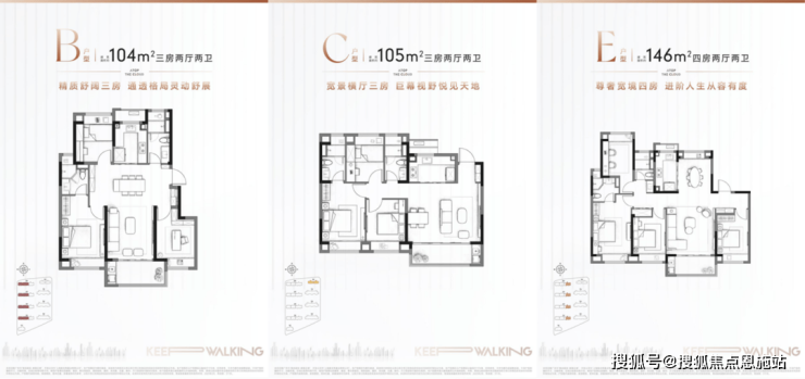 6号楼、8号楼——建筑面积约104㎡三房,建筑面积约146㎡四房