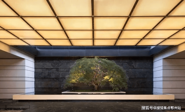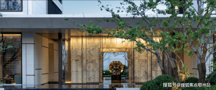 建筑立面上,源自罗伯特・斯特恩古典风格的现代转译,融入蒙迪里安格构手法,以质感石材、鎏金铝板与大面积玻璃的精妙组合,搭配独墅感框景序列,既彰显古典的厚重与尊崇,又兼具现代的简约与通透,成为城市天际线中一道独特的风景。