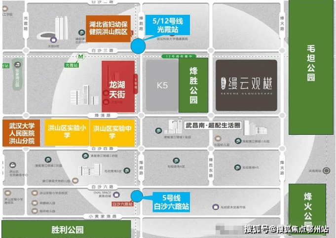 极速交通:5号线光霞站(600米)已通车,12号线(建设中)双地铁交汇、杨泗港快速通道等串联三镇繁华