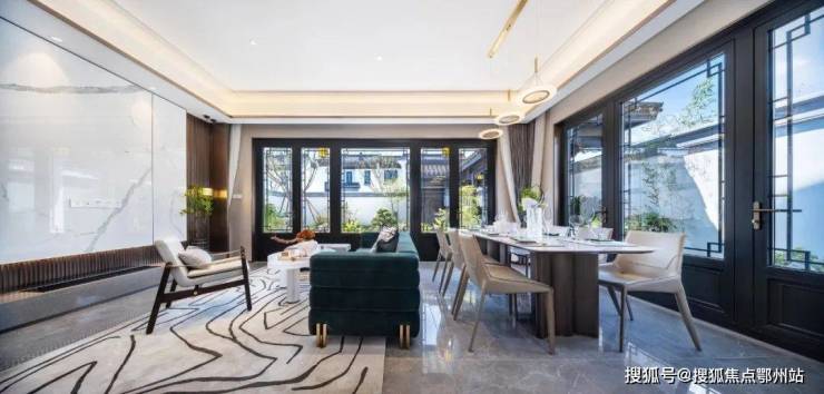 打造移步换景的江南园林雅境, 呈现“堂、巷、院、宅”四进式礼序院落。,将千年东方礼序融于一院。结合框景、对景、漏景等丰富的造景设计,营造“移步换景、如在画中”之感,汇集杭州桃李春风、安吉天使小镇等蓝城经典中式合院营造经验之大成,专为当代名人雅士打造有天有地有花园的江南院落生活。
