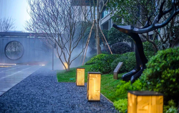 独特的堆坡地形,甄选绿植,不规则摆放的天然景石宛如山谷溪流旋转。