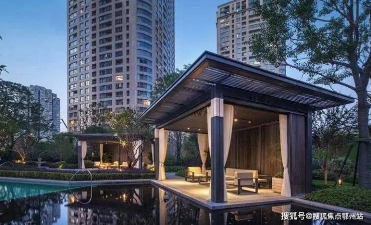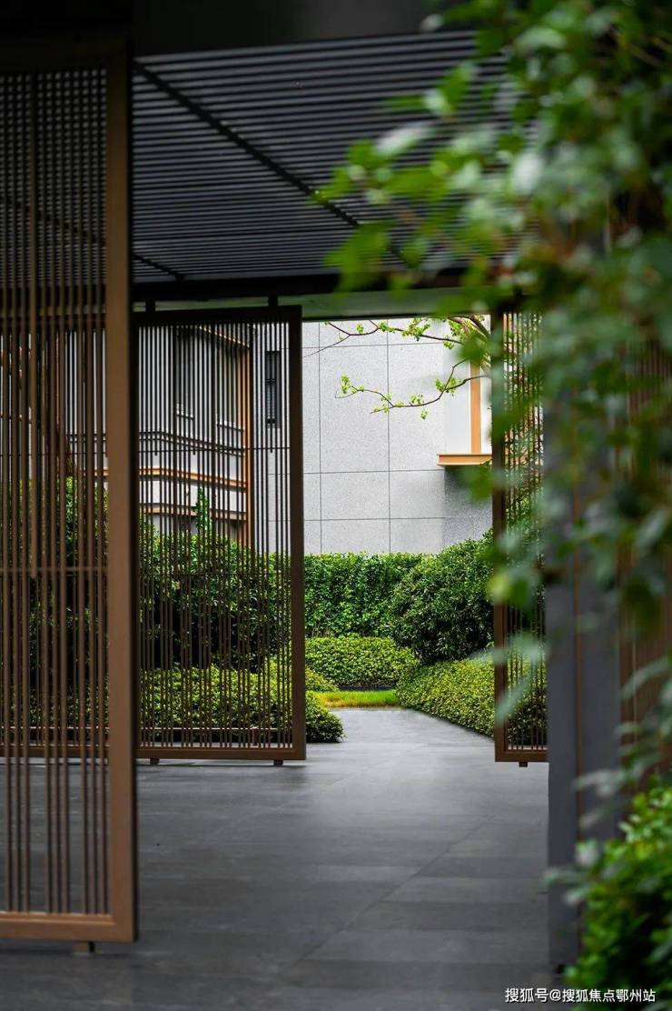 简洁大气幕墙搭配亭亭玉立的稀贵名品植被成景, “森屿渡口”在归家之始便拉开江南园林一步一景的帷幕, “岸屿清风”中的亭台岛屿、小桥流水,以当代图绘诗的方式演绎着居游其间的居住梦想,铺就行云流水的意境园林。