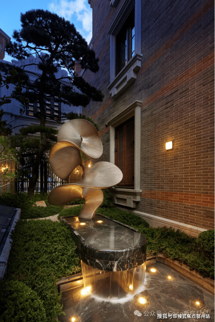 保利永兴里以“修旧如旧”的极致匠心,完美复刻外滩万国建筑群精妙的 Art Deco 肌理。香槟金铝板以 0.3 毫米级的惊人精度拼接成弧形天幕,与大面积玻璃幕墙、手工锻造铜质雨棚相得益彰,让建筑在阳光下散发着如和平饭店般的璀璨历史光芒。不仅如此,设计团队从邬达克手稿中汲取灵感,打造“垂直里弄”概念,7.2 米挑高骑楼贯通双花园,琉璃花窗、玻璃穹顶等元素巧妙融合,搭配花岗岩拼花地坪与意大利马赛克镶嵌的星空穹顶,实现时空的魔幻折叠,每一步都仿佛踏入历史与现代交织的奇妙画卷。
