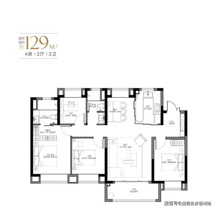 产品:103㎡、107㎡的三房两厅两卫及123㎡、129㎡的四房两厅两卫