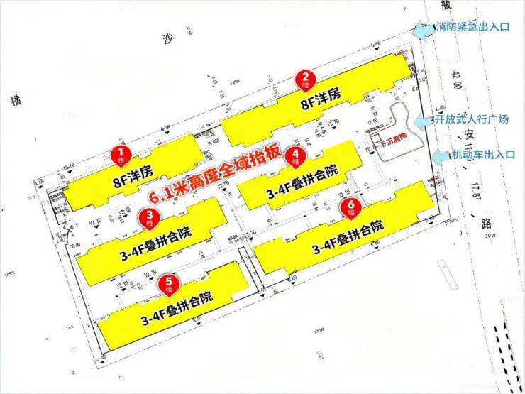 据规划方案显示,项目拟建6-8层洋房及3-4层叠加&合院产品,定位全大户型社区。并采用“全域抬板社区”设计,搭配下沉庭院,是首个新规全抬板别墅区。
