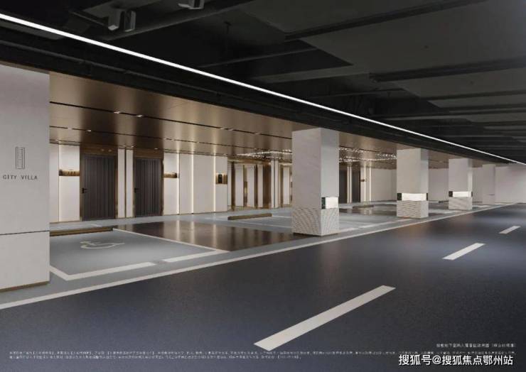 项目地下精装车库非常奢雅,汽车坡道采用氛围照明,缓解光环境变化,搭配星空顶造型彰显独特。