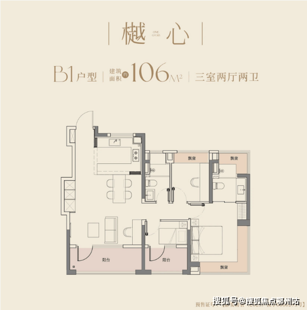 建面约106㎡户型,更是以宽尺大横厅和270°的转角飘窗赚足了眼球,阳光与清风自由流淌,居住舒适度全面提升。LDKB一体化设计,在餐厨区布局万能中岛台,打破了厨房与餐厅的界限,延伸烹饪空间,增加收纳空间,更将社交功能融入其中,重塑中国人的情感场域。