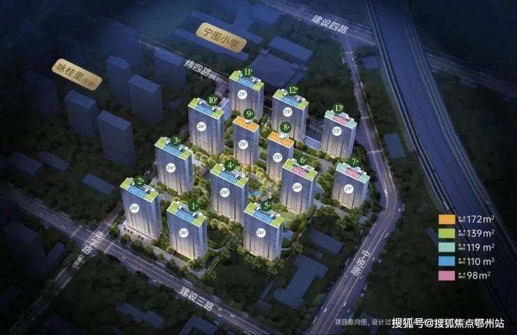 绿地率:35%, 可售:1130户, 面积:建面约98㎡、110㎡、119㎡、139㎡、172㎡,