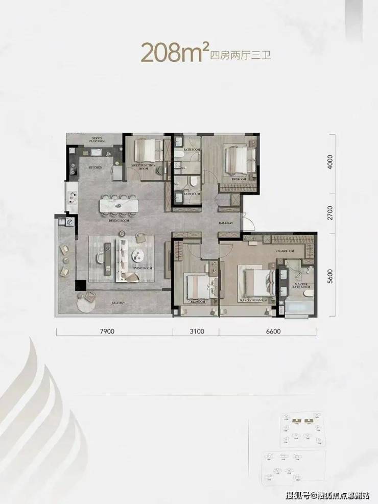 在尺度感上,做到了板块内目前惟一在售的200方以上超大户型,直击塔尖改善的痛点。建面约113-208方户型配置,改善户型占比85%以上,