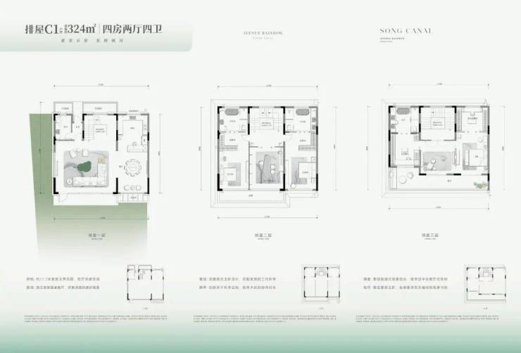 其 建筑面积约为136-176㎡,控制得当。虽然产权面积被有效控制,但墅居产品该有的空间感却没有减少, 前庭后院、地下延展空间、屋顶空间.....一系列空间,与市场上300㎡+产品在尺度表现上并无太大差异。