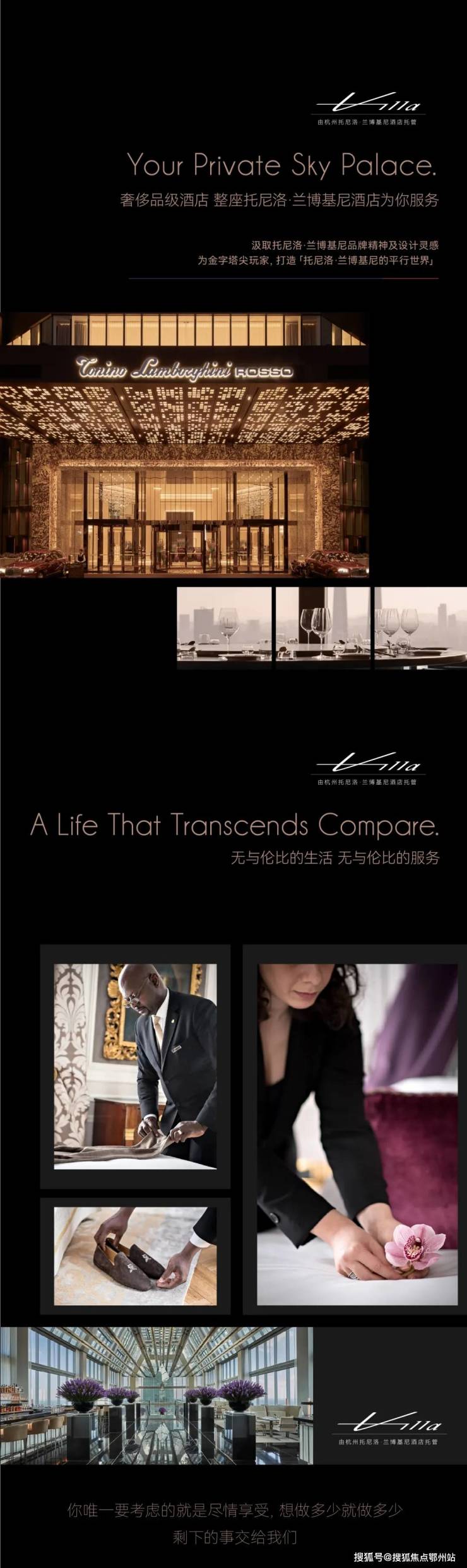 杭州托尼洛·兰博基尼行政公寓:产品设计首开建面约230-420㎡,精装交付(装修标准约1.8万/㎡)建面约230㎡参考总价800万起,3房3卫双主卧设计,约40㎡主卧奢配独立衣帽间。建面约420㎡,总价1200万起,4套房+1书房+1保姆房,客厅超13米弧形巨幕