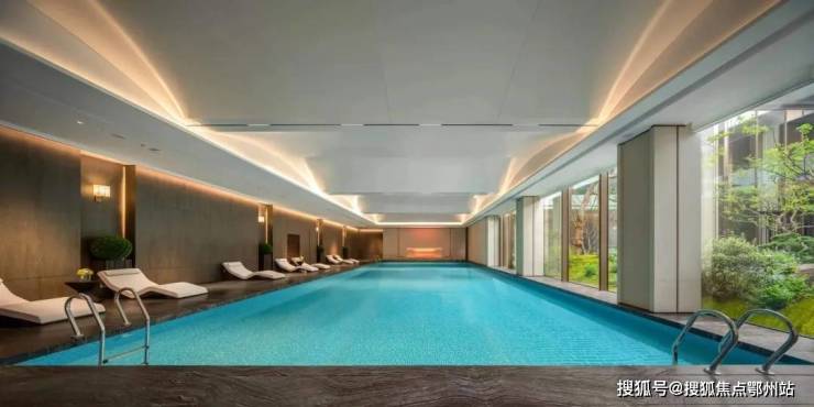 有恒温泳池,是以度假酒店为灵感设计的,通透的落地玻璃窗下与下沉庭院景观相互渗透,实现一年四季畅游的“游泳自由”。